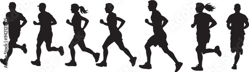 © MehmetKemal, Obraz premium set of vector silhouette of running people white background