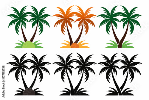 Obraz premium Set of vector silhouettes of coconut tree and palm logo isolated on a white background