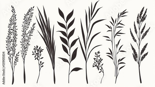 © itol, Fototapeta premium Set of Vector Silhouettes of Various Grasses and Plants