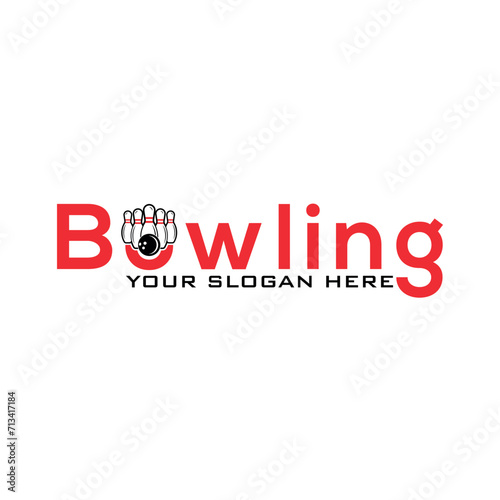 Obraz premium Set of vector vintage monochrome style bowling logo, Bowling ball, and bowling pins illustration.