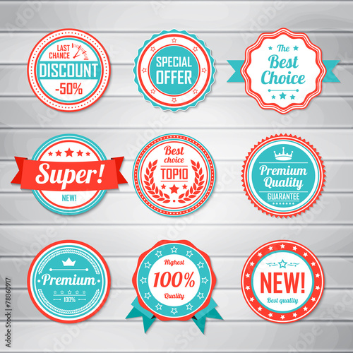 Obraz premium Set of vintage blue and red labels. Templates icons