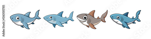 Obraz premium Set of Vivid Cookiecutter Shark in Dynamic Aquatic Scene