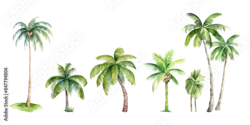 Obraz premium Set of watercolor coconut trees on white background