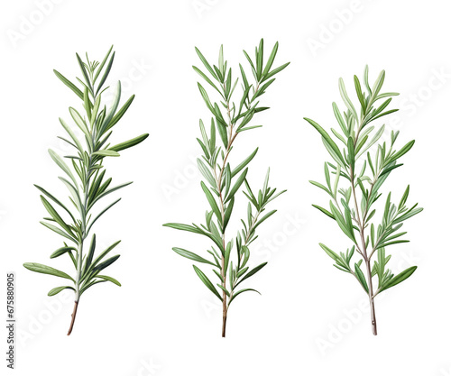Fototapeta premium Set of watercolor green leaves rosemary. Collection botanical isolated on transparent background suitable for Wedding Invitation, save the date, thank you, or greeting card.