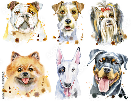 Fototapeta premium Set of watercolor portraits of dogs for decoration