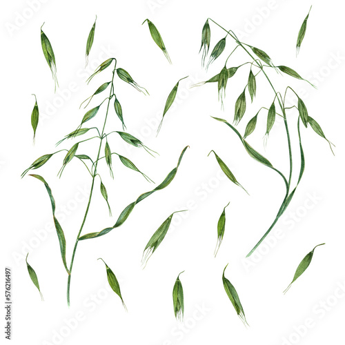 Naklejka premium Set of watercolor wild oats isolated on a white background, . Perfect for...
