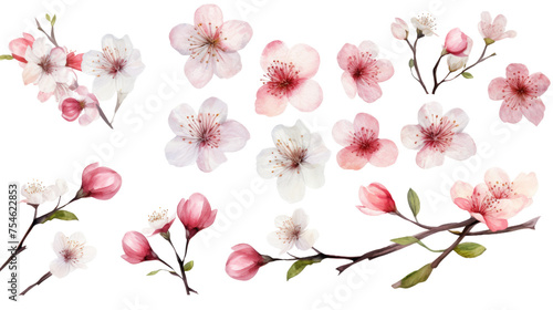 © Adisakdi, Naklejka premium Set of watercolor wildflowers painting isolated on clear png background and transparent background. Fresh and nature concept for nature decorative and flower element, AI generative.