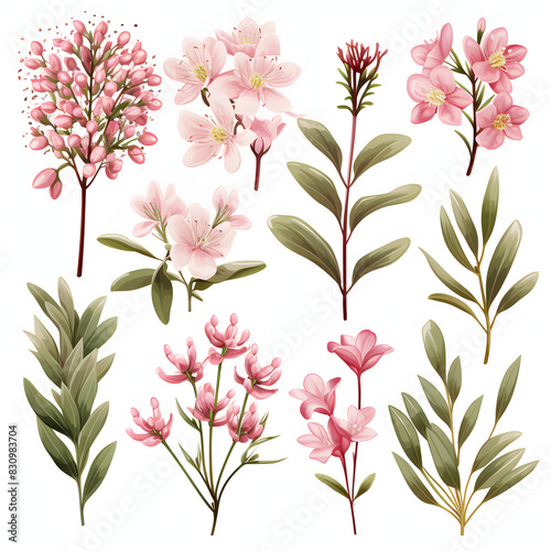 © Jareerut, Obraz premium set of Waxflower, plants, leaves and flowers. illustrations of beautiful realistic flowers for background, pattern or wedding invitations