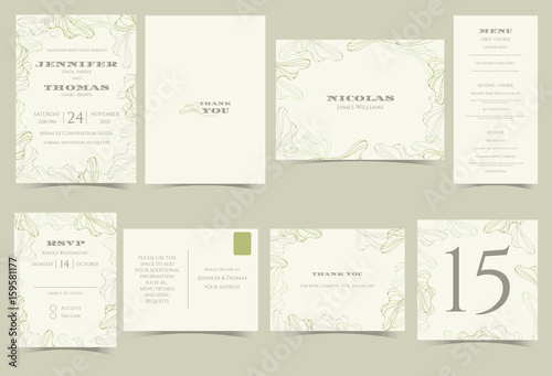 Fototapeta premium Set of Wedding invitation card.Green and Gray floral minimalist modern...