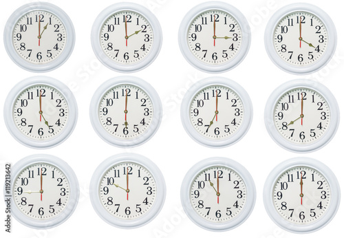 © SKphotographer , Naklejka premium Set of white clocks isolated white background.
