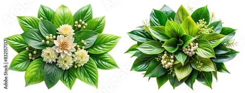 © Alex, Naklejka premium Set of white flowers with green leaves floral arrangement, isolated on transparent background