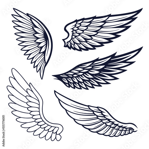 © Designer As HasiB, Fototapeta premium Set of wings icons. Wings icons. Bird wings, angel wings elements. Wing collection in different shape. Wings badges. Vector illustration