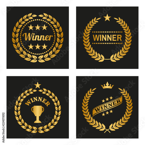 Obraz premium Set of winner golden laurel wreaths.