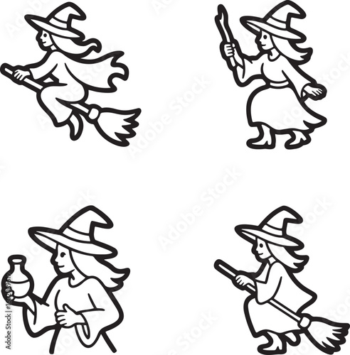 © Silhouette Store, Fototapeta premium Set of Witch Outline vector illustration isolated On Transparent Background