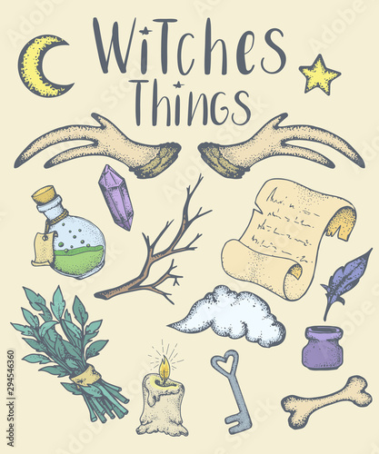 © Hmarka, Naklejka premium Set of witches things. Halloween set