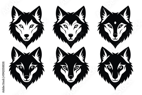 © pipp99, Obraz premium set of wolf head silhouette line art vector illustration with a white background