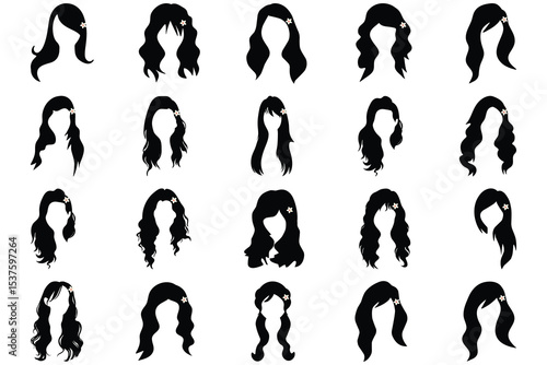 © MdRashed, Naklejka premium Set of women's hair Silhouette