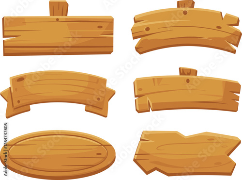 Naklejka premium Set of wooden signboard illustrations with different shapes and textures,...