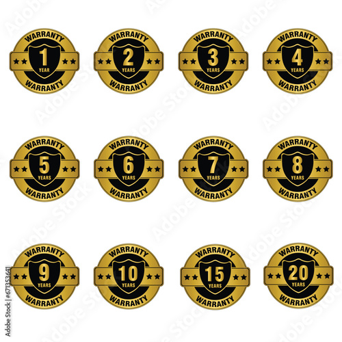© N2, Naklejka premium Set of years warranty golden labels, collection of year warranty gold badges