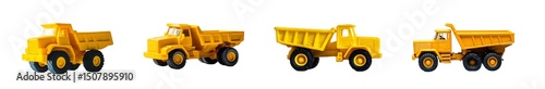 © Syauqiya, Fototapeta premium set of yellow dump trucks isolated on transparent background