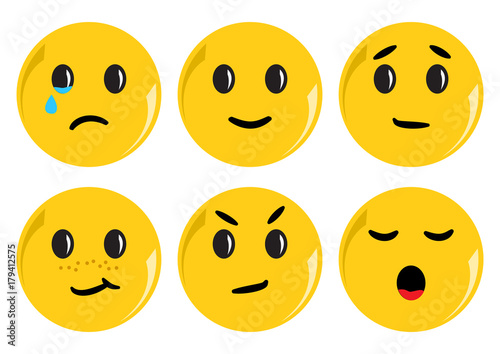 © Sylfida, Fototapeta premium Set of yellow smileys with different emotions. Vector illustration