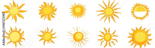 Fototapeta premium set of yellow sun icons in flat design on white background