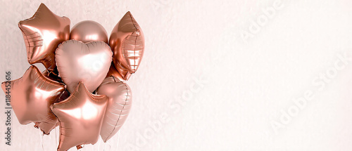 © Fuljan, Naklejka premium Set of zink air balloon, stars in metallic finish isolated on a transparent background for festive occasions. Generative AI