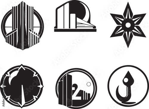 Naklejka premium Set Postmodern abstract geometric graphic elements, Brutalist vector shapes,...