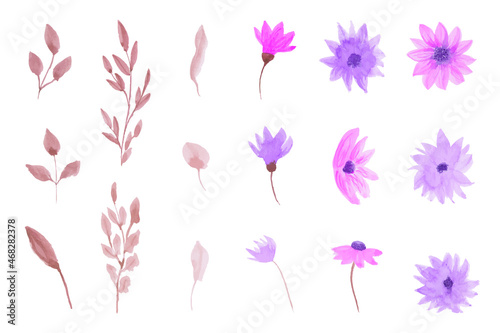 © MiyaNuraisah, Fototapeta premium Set Purple Flowers