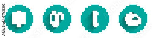 © Iryna, Obraz premium Set Racing traffic light, Car muffler, Wrench spanner and helmet icon with long shadow. Vector
