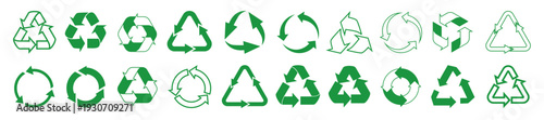 © onhg, Obraz premium Set recycle icons. Label template. Green eco circle arrows. Vector Icons.