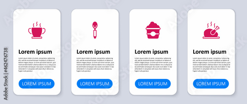 Obraz premium Set Roasted turkey or chicken, Popcorn in cardboard box, Spoon and Bowl of hot soup. Business infographic template. Vector