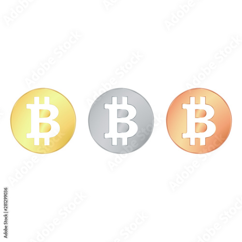 Obraz premium Set round smooth shiny cryptocurrency coins.