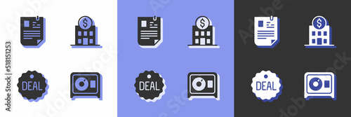 Fototapeta premium Set Safe, Resume, Deal and Bank building icon. Vector