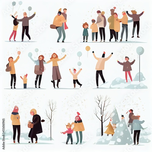 Fototapeta premium set scenes people celebrating