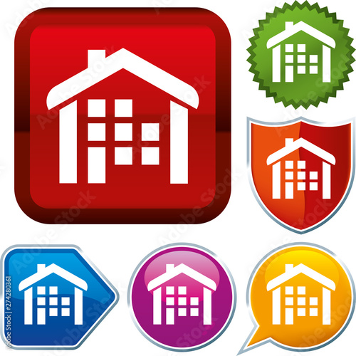 © rosendo, Fototapeta premium Set shiny icon series on buttons. Residential.