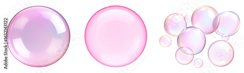 Obraz premium Set Shiny Pink Soap Bubble with Rainbow Hues, Side View with Depth Blur, isolated on transparent background PNG
