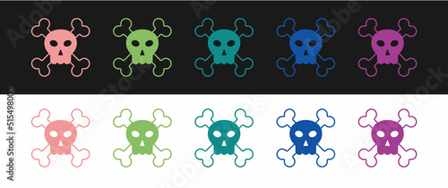 © Iryna, Obraz premium Set Skull on crossbones icon isolated on black and white background. Happy Halloween party. Vector