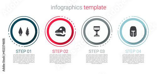 Fototapeta premium Set Stone age arrow head, Dinosaur skull, Medieval goblet and iron helmet. Business infographic template. Vector