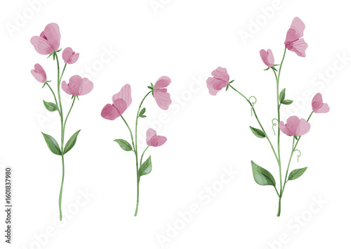 © Maciku Maci, Naklejka premium Set Sweet Pea Flower Illustration transparent