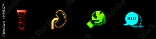 Fototapeta premium Set Test tube and flask, Human kidney, Hand holding Earth globe and Bio healthy food icon. Vector