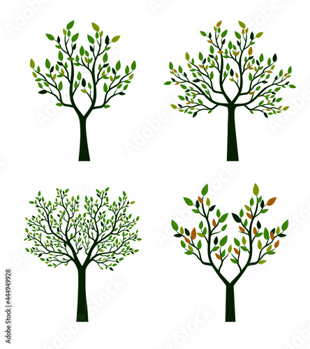 © topor, Obraz premium Set Trees. Vector outline Illustration. Plant in Garden.