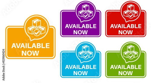 © Javanism, Obraz premium set trendy colorful available now labels icon sign template sticker design vector illustration