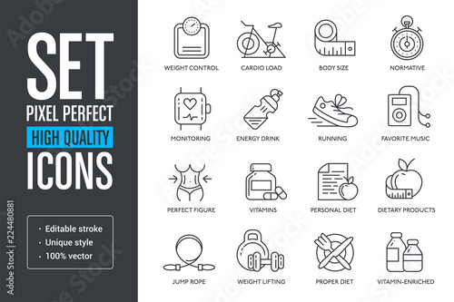 Fototapeta premium Set vector pixel perfect high quality lines icons