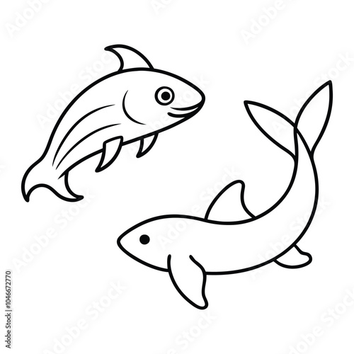 © Mozaffor, Fototapeta premium Set vector sea animals hand drawn outline sketch illustration