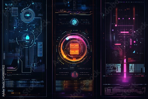 © Lily, Fototapeta premium Set vertical technology banners, showcasing innovative tech elements and modern design