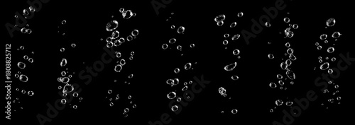 © VRVIRUS, Obraz premium set water bubble white oxygen air isolated on a black background. underwater clear liquid with bubbles flowing up to the water surface. drop air in water