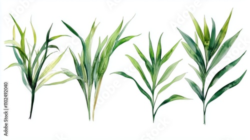 © Kristina, Obraz premium set Watercolor green grass isolated on white background. Hand drawn illustration.