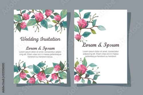 Obraz premium set wedding invitation cards with flowers decoration vector illustration design