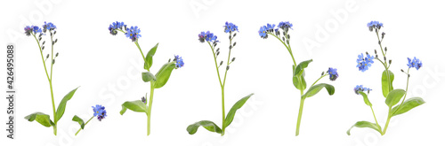 © New Africa, Naklejka premium Set with beautiful tender forget me not flowers on white background. Banner design